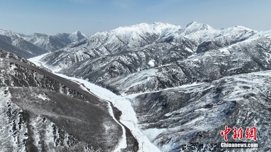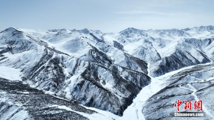 3月22日,位于甘肅省張掖市山丹馬場的祁連山溝壑縱橫、白雪皚皚,風光旖旎、壯美如畫。