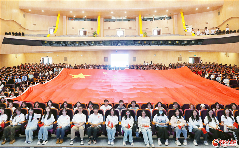 伴隨著震撼的誓言,一面巨大的五星紅旗從會(huì)場后方徐徐展開,幾乎鋪滿整個(gè)會(huì)場,“扎根西部、報(bào)效祖國”的豪情與壯志在現(xiàn)場涌動(dòng)。