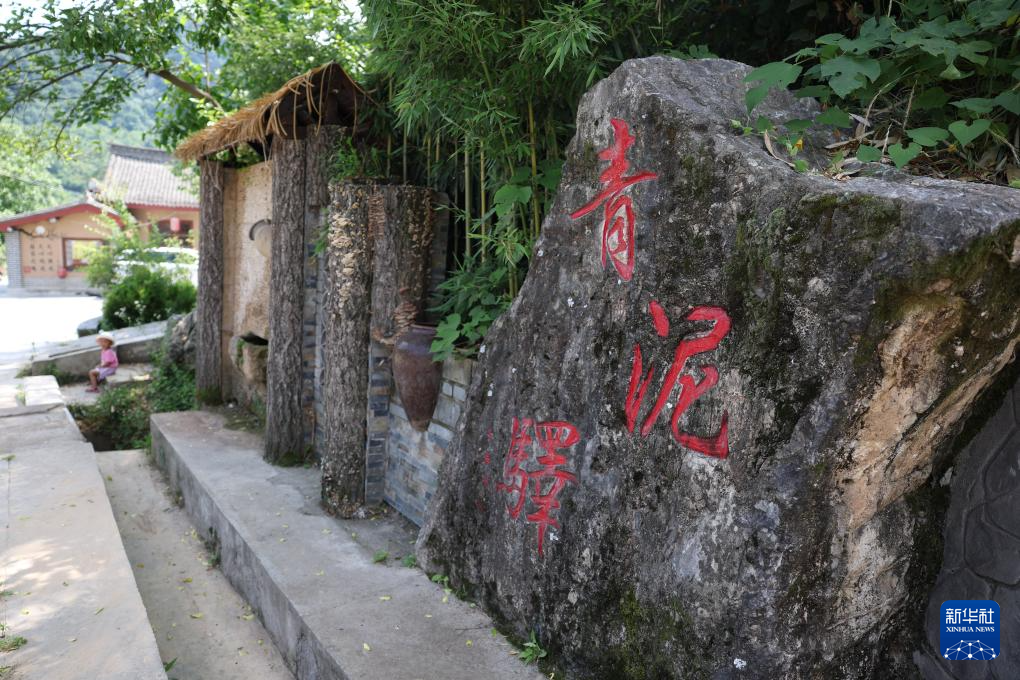 7月14日在甘肅省隴南市徽縣大河店鎮(zhèn)青泥村拍攝的青泥驛石碑。新華社記者 陳斌 攝