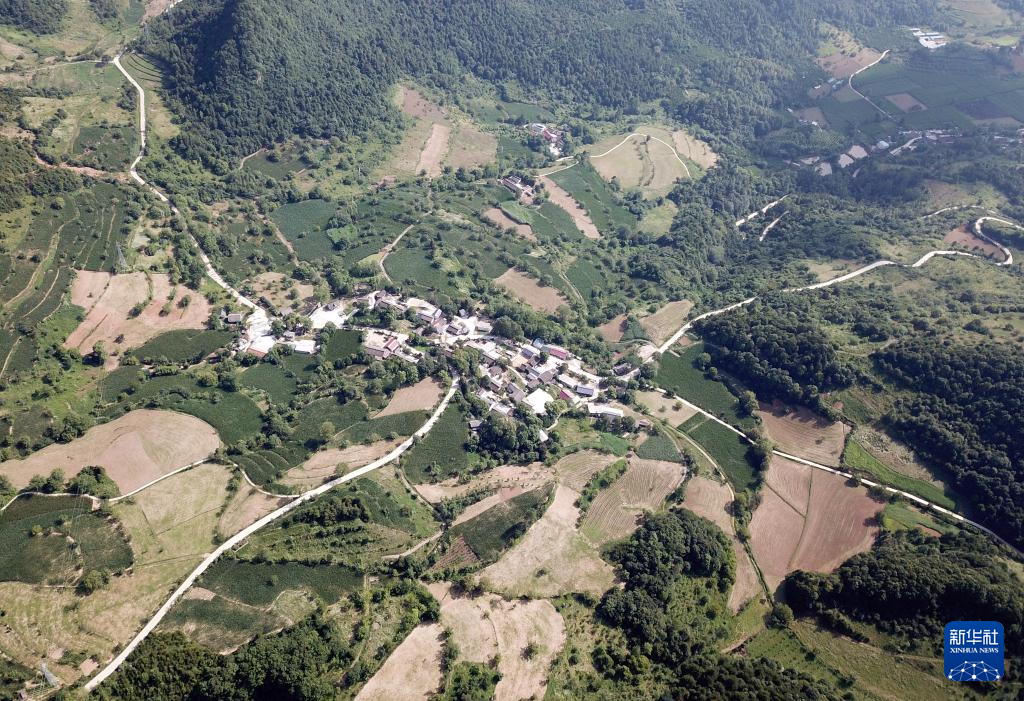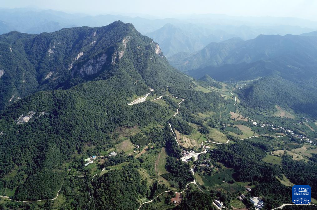 7月14日拍攝的青泥嶺上的村莊和鄉(xiāng)村道路(無人機(jī)照片)。新華社記者 馬寧 攝