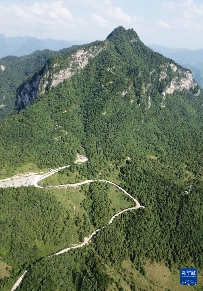 7月14日拍攝的青泥嶺主峰鐵山和鄉(xiāng)村道路(無人機(jī)照片)。新華社記者 馬寧 攝