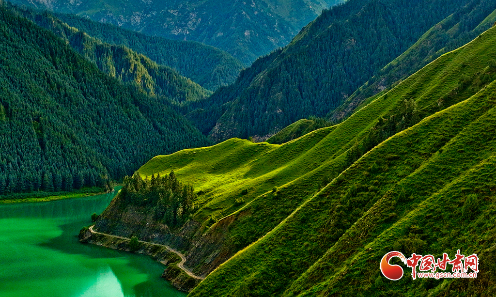 8月8日一場(chǎng)小雨過(guò)后,祁連山國(guó)家公園甘肅張掖市民樂(lè)縣海潮壩段,群山環(huán)抱。綠意蔥蔥的原始森林中蒼松翠柏聳立,黑河水與碧綠的草原、山林相映成趣,共同勾勒出一幅國(guó)家公園的秀麗畫卷。