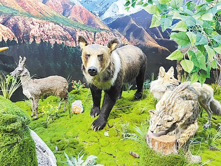 祁連山國(guó)家公園自然博物館動(dòng)物標(biāo)本。新甘肅·甘肅日?qǐng)?bào)通訊員 李夢(mèng)皎