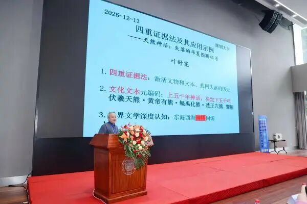 2025年12月13日,在深圳大學(xué)召開(kāi)的第九屆中國(guó)學(xué)術(shù)評(píng)價(jià)論壇上,上海交通大學(xué)文科資深教授葉舒憲提出的“四重證據(jù)法”入選中國(guó)哲學(xué)社會(huì)科學(xué)10個(gè)原創(chuàng)研究方法(征求意見(jiàn)中)。“四重證據(jù)法”主要涉及歷史學(xué)、語(yǔ)言文學(xué)、社會(huì)學(xué)等學(xué)科,為人文學(xué)科提供了一套突破性的方法論體系,成功推動(dòng)了跨學(xué)科融合,為構(gòu)建中國(guó)自主知識(shí)體系提供了重要研究方法,充分體現(xiàn)了上海交通大學(xué)人文社科“立足傳統(tǒng)、面向未來(lái)”的學(xué)術(shù)追求,彰顯了上海交通大學(xué)新文科建設(shè)持續(xù)發(fā)力、人文學(xué)院文脈傳承和繁榮發(fā)展的卓越成效。