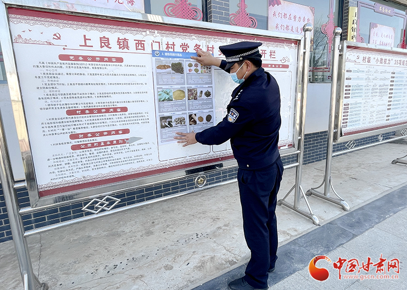 上良派出所社區(qū)民警在村務(wù)公開欄張貼禁毒宣傳海報(bào)