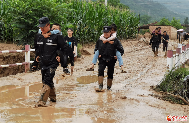 7月15日清晨,洪水致慶城縣主干道G211銀西公路、阜桐公路和村道多處出現(xiàn)滑坡、塌方以及部分民房進(jìn)水等險情,馬嶺鎮(zhèn)上午旗村數(shù)百名群眾被困,慶城縣公安局緊急組織警力趕赴現(xiàn)場,成功救出被困村民80余人。