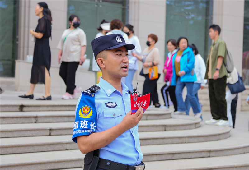 “我們?cè)诓┪镳^內(nèi)部開展游客分流、提醒引導(dǎo)、巡邏防控、排查安全隱患等工作,全力為游客打造隱患少、服務(wù)好的平安游覽環(huán)境。同時(shí),我們的交警同事也在周邊道路積極開展道路交通疏導(dǎo),根據(jù)車流量情況在不同路段進(jìn)行分流,保障游客車輛安全有序通行。”西站派出所副所長魏相昆說,“甘肅省博物館周邊停車緊張,提醒游客盡量乘坐公共交通工具,如遇突發(fā)情況請(qǐng)及時(shí)和我們執(zhí)勤民警聯(lián)系,我們會(huì)全力提供幫助。”