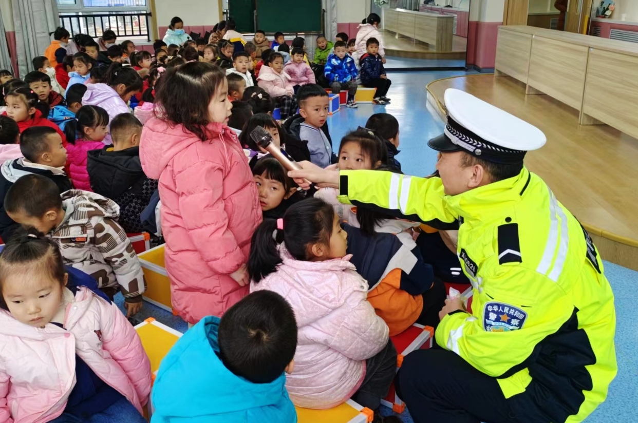 宣傳人員走進(jìn)幼兒園,普及交通安全知識(shí)(甘肅法治報(bào)供圖)