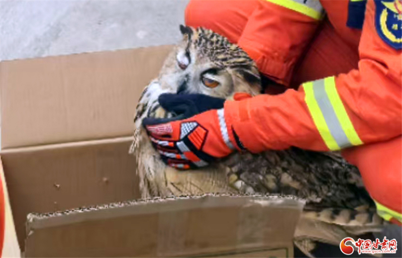 經工作人員辨認,該鳥類為雕鸮,屬國家二級保護動物,經檢查該雕鸮無外傷,符合放生條件,遂將其帶到安全區(qū)域后放回了大自然。