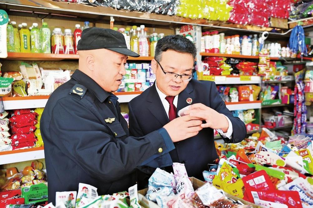 民勤縣檢察院聯(lián)合縣市場監(jiān)管局對校園周邊小賣部、超市等重點場所開展食品安全專項檢查,護(hù)航未成年人健康成長(2024年3月25日拍攝)。