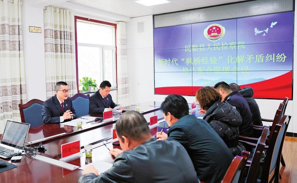 民勤縣檢察院召開新時代“楓橋經(jīng)驗”化解矛盾糾紛協(xié)作配合聯(lián)席會議,用心用力用情化解各類矛盾糾紛(2024年3月19日拍攝)。