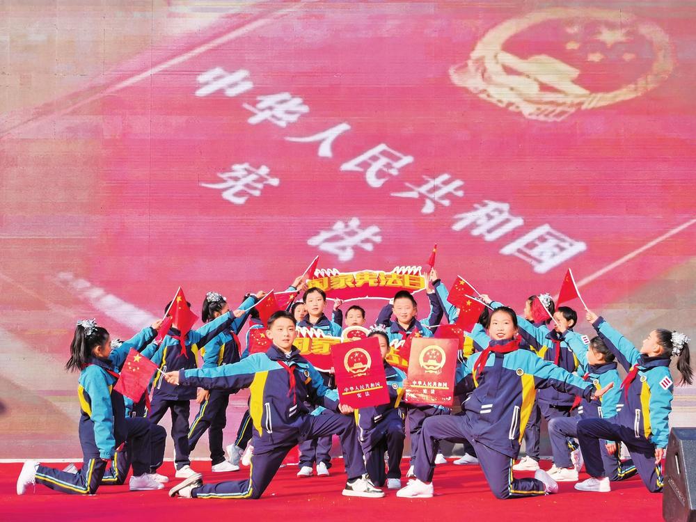 張掖路小學(xué)學(xué)生演出情景歌舞《憲法伴我們成長(zhǎng)》。12月4日,蘭州市在市民廣場(chǎng)舉行2024年“12·4”國(guó)家憲法日暨憲法宣傳周活動(dòng)。 新甘肅·甘肅法治報(bào)記者楊丹攝