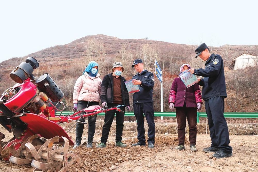 民警向農(nóng)機(jī)駕駛員普及安全知識(shí)。3月28日,漳縣公安局宣傳民輔警走進(jìn)田間地頭,為春耕生產(chǎn)保駕護(hù)航。 新甘肅·甘肅法治報(bào)通訊員馮鵬兵攝
