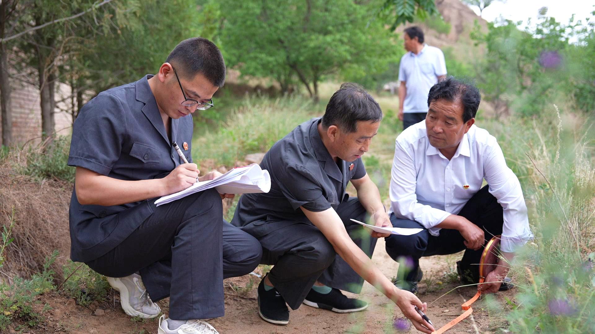 鎮(zhèn)原縣法院開邊法庭現(xiàn)場(chǎng)調(diào)處一起相鄰權(quán)糾紛(慶陽(yáng)市中級(jí)人民法院供圖)