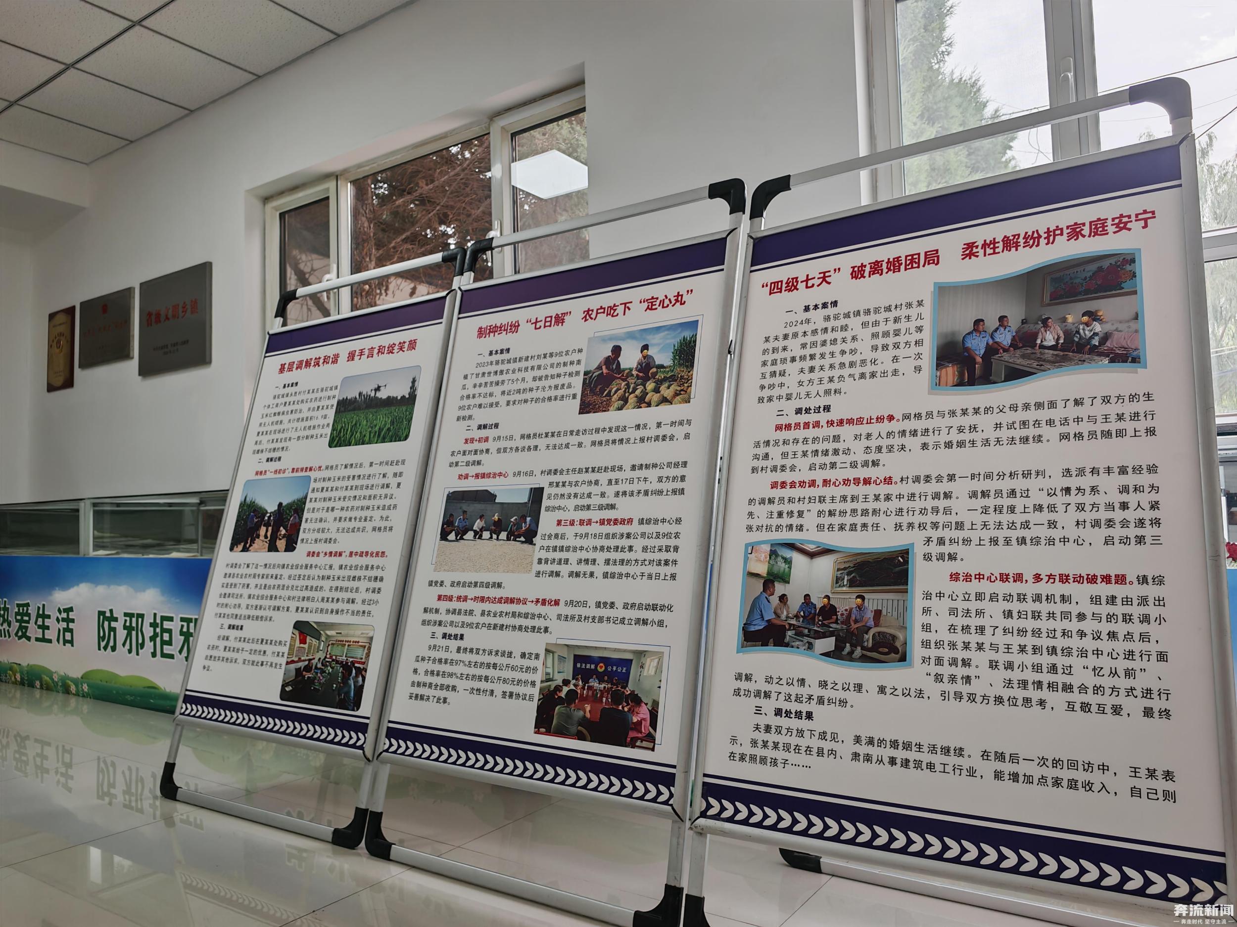 駱駝城鎮(zhèn)是高臺縣推行“四級七天”調(diào)解工作法的典型樣本。作為一個移民鄉(xiāng)鎮(zhèn),這里聚居著12個民族、來自5省8區(qū)的群眾。水事、農(nóng)事糾紛一度高發(fā)。