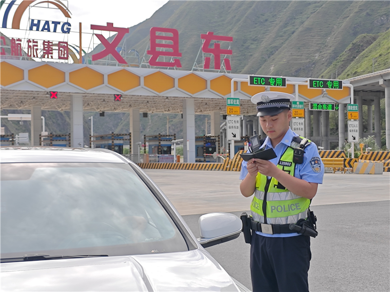 8月21日下午,車輛駛出高樓山隧道1公里后在文縣東收費站下高速,隴南市公安局交通管理支隊高速公路八大隊的民警任濤和同事們正在開展定點勤務(wù)。