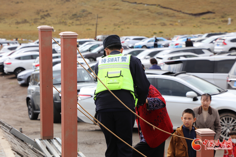 “十一”期間,記者來到天祝,在一個(gè)個(gè)景點(diǎn),隨處可見“藏藍(lán)”的身影,他們或駐守在景區(qū)臨時(shí)停車場(chǎng),或穿行在景區(qū)人潮深處,熱情服務(wù)游客,繪就秋日最美畫卷……