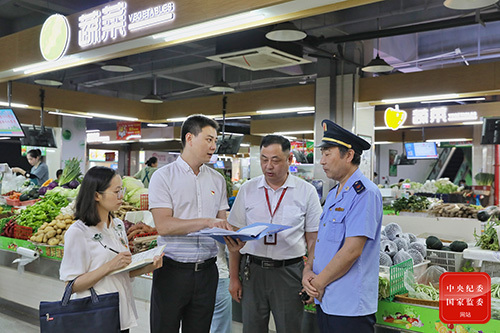 圖為南京市棲霞區(qū)紀(jì)委監(jiān)委針對(duì)“陽(yáng)光惠民”監(jiān)管平臺(tái)上的預(yù)警信息,組織力量核查該區(qū)星級(jí)農(nóng)貿(mào)市場(chǎng)獎(jiǎng)勵(lì)資金撥付方面的問(wèn)題線(xiàn)索。