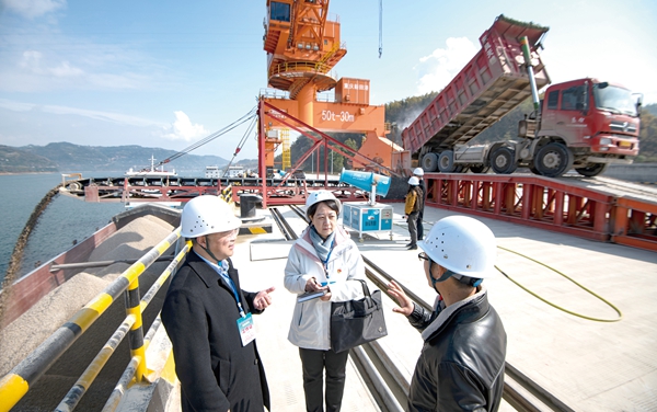 重慶市萬(wàn)州區(qū)紀(jì)委監(jiān)委圍繞推動(dòng)成渝地區(qū)雙城經(jīng)濟(jì)圈建設(shè)跟進(jìn)監(jiān)督,保障重點(diǎn)工程順利推進(jìn)、廉潔高效。圖為萬(wàn)州區(qū)紀(jì)檢監(jiān)察干部深入重點(diǎn)水運(yùn)項(xiàng)目新田港現(xiàn)場(chǎng)了解情況。 攝影/冉孟軍(萬(wàn)州區(qū)紀(jì)委監(jiān)委干部)