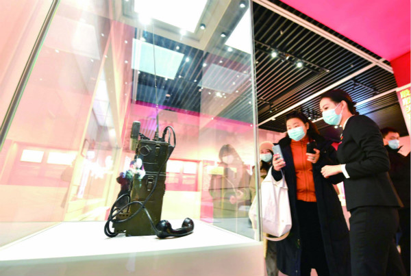 日前,“紅色電波中的領(lǐng)袖風(fēng)范——毛澤東同志香山時(shí)期發(fā)布電報(bào)手稿”專(zhuān)題展覽在北京香山革命紀(jì)念館舉行。圖為觀(guān)眾在觀(guān)看拍攝展出的電臺(tái)。(圖片來(lái)源:人民視覺(jué))