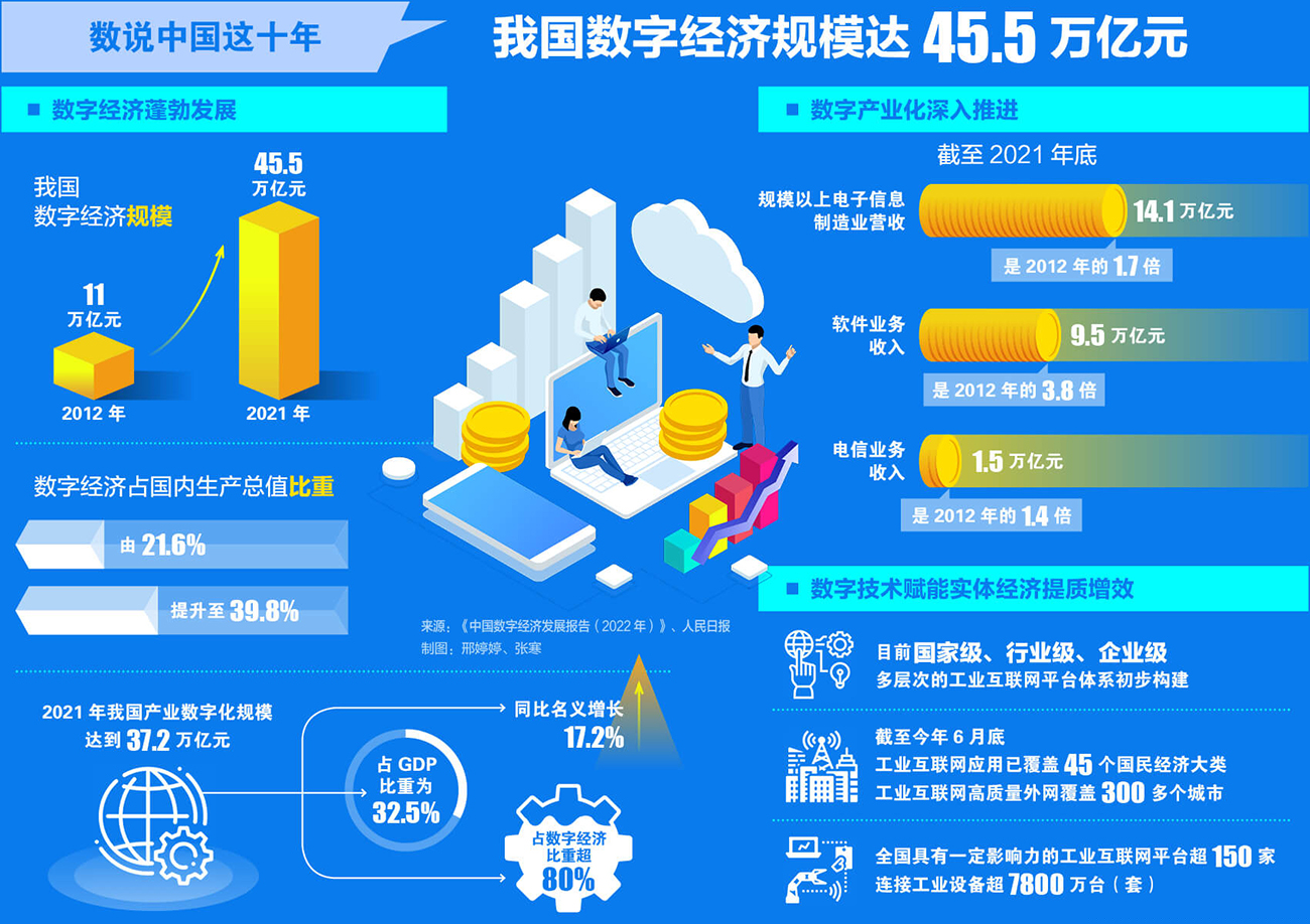 數(shù)說中國(guó)這十年丨我國(guó)數(shù)字經(jīng)濟(jì)規(guī)模達(dá)45.5萬(wàn)億元