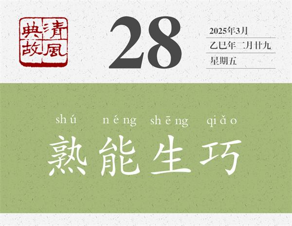 陳堯咨的射術(shù)不是不高,但用“無他,但手熟爾”來評價(jià),給人的感覺是輕飄飄的;賣油翁往葫蘆里倒油的技術(shù)也不是不高,但賣油翁自己也說是“我亦無他,惟手熟爾”。在這個(gè)故事后面,歐陽修還說了一句話:“此與莊生所謂解牛、斫輪者何異?”“‌‌解牛”即“庖丁解牛”,“斫輪”即“輪扁斫輪”,前者即典故“游刃有余”之源,后者即典故“得心應(yīng)手”之源。意思是,這些并不神秘,都是“惟手熟爾”。后人即以“熟能生巧”為典,形容實(shí)踐多了,自然就能找到竅門,產(chǎn)生出巧妙的辦法,干起事來就能隨心所欲。董必武的詩《次稚天韻》:“會(huì)者不難終要學(xué),熟能生巧豈徒詩。”
