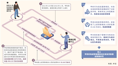 楊一龍:根據(jù)刑法第一百八十六條規(guī)定,違法發(fā)放貸款罪是指銀行或者其他金融機構(gòu)的工作人員違反國家規(guī)定發(fā)放貸款,數(shù)額巨大或者造成重大損失的行為。本案中,對于甲接受有關(guān)公司和個人請托,在明知其借款用途不真實、貸款資料虛假或冒名貸款等情況下仍審核通過貸款,明顯違反國家法律法規(guī)不存在爭議。但有觀點認為,甲審核通過貸款僅為發(fā)放貸款環(huán)節(jié)中的一個非決定性環(huán)節(jié),不應(yīng)讓甲承擔違法發(fā)放貸款的刑事責(zé)任,如果認定其構(gòu)成違法發(fā)放貸款罪,那么就應(yīng)追究貸款環(huán)節(jié)所有人的罪責(zé)。