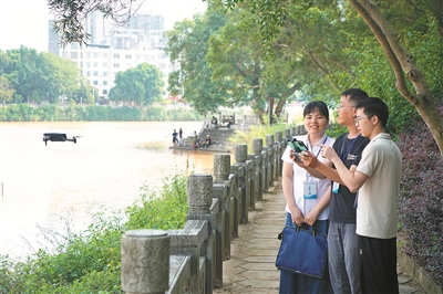 廣西壯族自治區(qū)北流市紀委監(jiān)委把生態(tài)環(huán)保責任落實情況作為政治監(jiān)督重點,嚴肅查處濕地保護方面不擔當、不作為、亂作為、假作為等問題,用鐵的紀律守護綠水青山。圖為近日,該市紀檢監(jiān)察干部與生態(tài)環(huán)境部門工作人員在圭江河濕地開展聯(lián)合監(jiān)督檢查,了解相關黨員干部履職情況。李家輝 攝