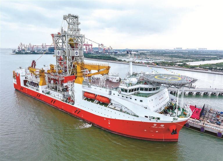 “十四五”時期,我國持續(xù)加強關鍵核心技術攻關和成果應用,加快高端裝備、先進制造等領域關鍵技術攻關,推動傳統(tǒng)產業(yè)向高端化、智能化、綠色化轉型。圖為擁有最大11000米的鉆深能力、我國自主設計建造的首艘大洋鉆探船“夢想”號,該船于“十四五”時期正式入列(資料圖片)。新華社記者 劉大偉 攝