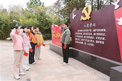 12月2日,江蘇省南京市溧水區(qū)紀(jì)委監(jiān)委組織部分青年黨員干部進(jìn)行黨章學(xué)習(xí)。圖為青年黨員干部在重溫入黨誓詞。劉勝君 攝