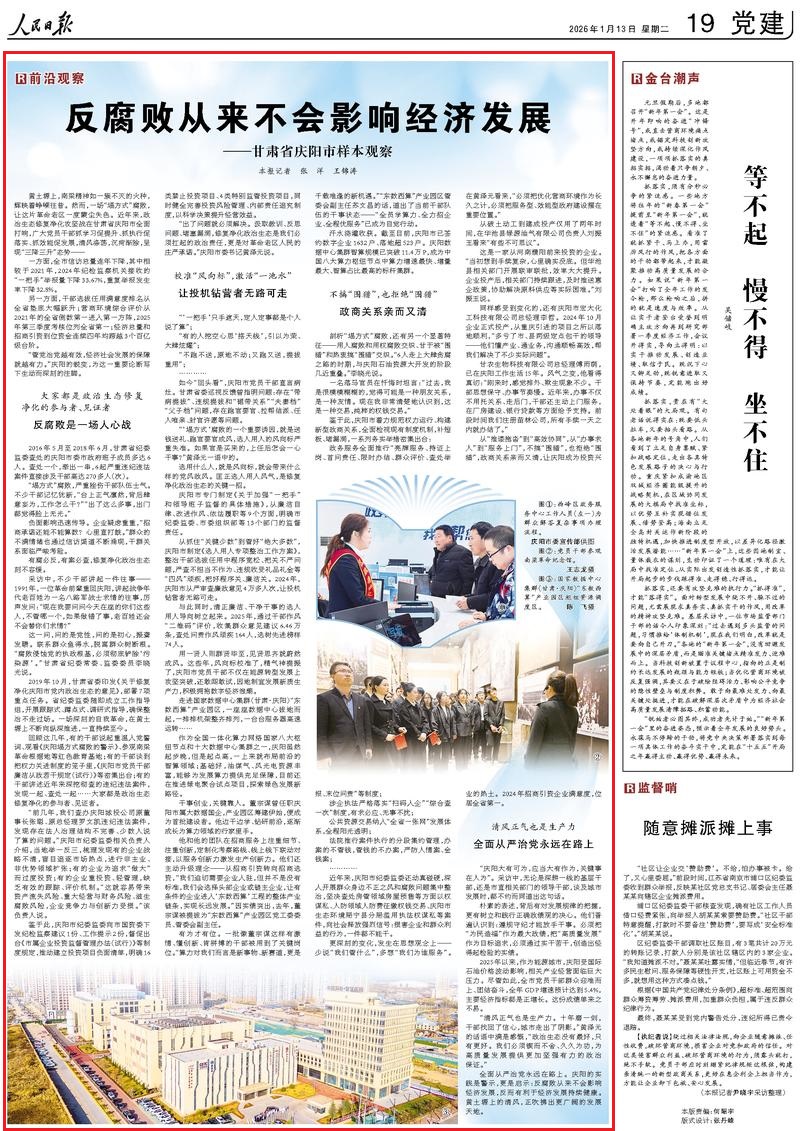 全面從嚴治黨永遠在路上。慶陽的實踐是警示,更是啟示:反腐敗從來不會影響經(jīng)濟發(fā)展,反而有利于經(jīng)濟發(fā)展持續(xù)健康。黃土塬上的清風(fēng),正吹拂出更廣闊的發(fā)展天地。(記者 張洋 王錦濤)