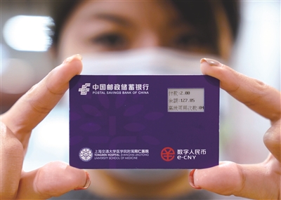 1月5日,在上海交通大學(xué)醫(yī)學(xué)院附屬同仁醫(yī)院,工作人員在展示數(shù)字人民幣“硬錢包”。 新華社記者 劉穎 攝