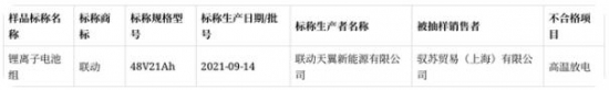 2021年上海市電動自行車鋰離子電池產(chǎn)品質量監(jiān)督抽查不合格產(chǎn)品