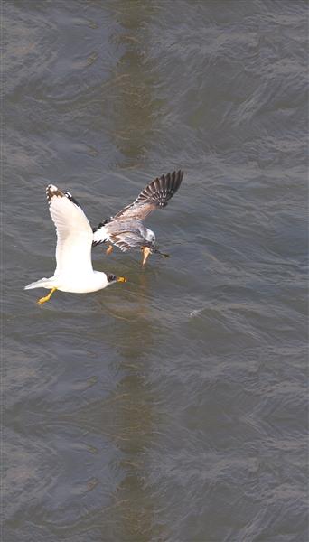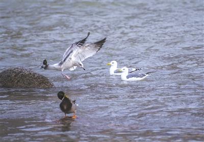 海鷗爭(zhēng)魚(yú)。張福昌2019年12月中旬?dāng)z于蘭州城關(guān)黃河大橋。