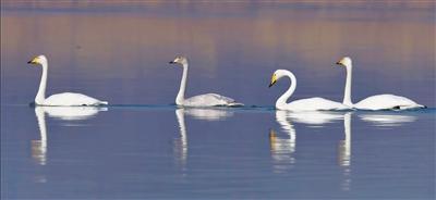 大天鵝首次光臨蘭州。 張?jiān)?nbsp;攝