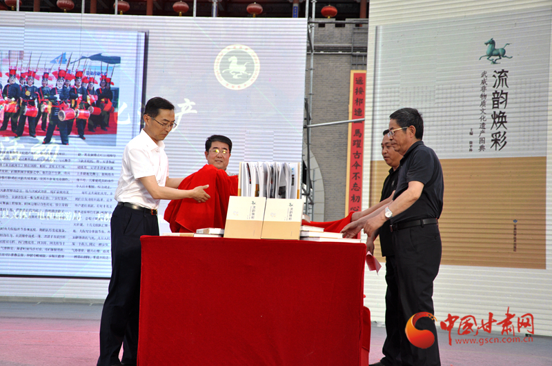 活動(dòng)中,《流韻煥彩——武威非物質(zhì)文化遺產(chǎn)圖典》揭幕并首發(fā)?!读黜崯ú?mdash;—武威非物質(zhì)文化遺產(chǎn)圖典》是由武威市文體廣電和旅游局組織編寫,讀者出版集團(tuán)旗下的甘肅科學(xué)技術(shù)出版社出版,先后歷時(shí)5載。該圖典將散落在武威廣袤大地上的璀璨珍珠串連起來,將牽動(dòng)著記憶深處的濃濃情思匯聚起來,展示了一個(gè)歷史武威、一個(gè)文化武威、一個(gè)多彩武威,是解讀武威的最好途徑。該圖典共收錄了84個(gè)非遺項(xiàng)目,81位項(xiàng)目代表性傳承人,用2000多張圖片和文字介紹,全方位、多角度展示了武威市非遺項(xiàng)目的獨(dú)特性、活態(tài)性、傳承性、流變性、綜合性、民族性、地域性等基本特點(diǎn)。該圖典最大的亮點(diǎn),就是在國(guó)家級(jí)、省級(jí)項(xiàng)目中融入互聯(lián)網(wǎng)思維,加入二維碼視頻鏈接,對(duì)項(xiàng)目進(jìn)行動(dòng)態(tài)視頻展示,讓《圖典》不僅可看、可讀,而且能說會(huì)動(dòng),能唱會(huì)跳,實(shí)現(xiàn)了非遺項(xiàng)目活態(tài)傳承的創(chuàng)新。