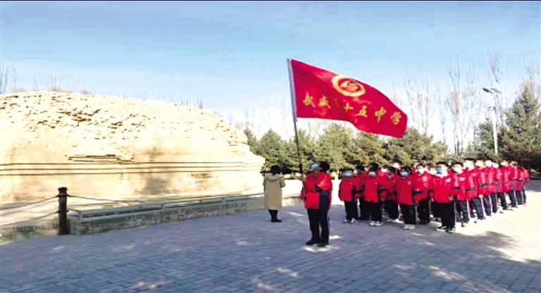 2019年8月,涼州會盟被編入教育部統(tǒng)編高一歷史教材,這是一件具有重大意義的事情,為全國中學生鑄牢中華民族共同體意識發(fā)揮了積極作用。為生動呈現(xiàn)統(tǒng)編教材中涼州會盟這一重大歷史事件,受央視華語環(huán)球節(jié)目中心《國家記憶》欄目組委托,武威市電視臺攝制組和武威十五中學師生50多人親臨涼州會盟紀念館,現(xiàn)場參與采訪拍攝現(xiàn)場教學的相關事宜。
