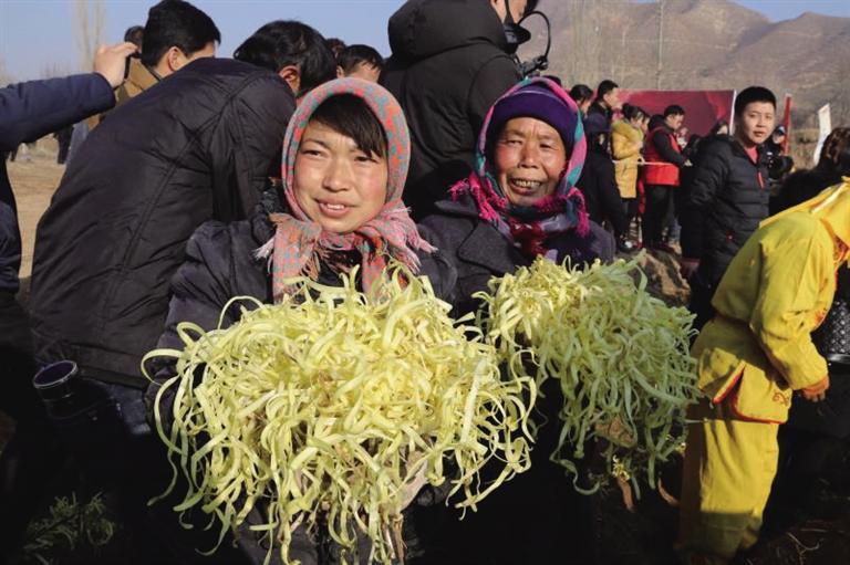 “今年地頭價(jià)每斤15元,這還是頭一回。”勞動(dòng)間隙,村民們議論著韭黃的價(jià)格,隨后把一筐筐金燦燦的韭黃放在商販的稱上,接著到手的便是一疊疊鈔票。“給韭黃抖土感覺(jué)就像數(shù)錢一樣,嘿嘿,麥草下的‘黃金’今年又豐收了。”村民們你一言我一語(yǔ),爽朗的笑聲回蕩在冬日的余暉里。