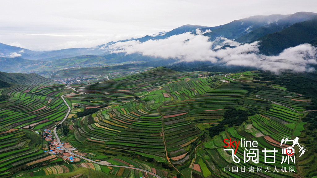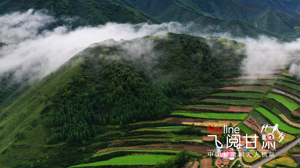 白露將至,位于榆中縣馬坡鄉(xiāng)的分水嶺,青山環(huán)繞,梯田阡陌交錯(cuò),線條優(yōu)美,風(fēng)光旖旎。一陣陣雨過后,梯田云霧繚繞,遠(yuǎn)處的崇山峻嶺、茂林修竹、通村公路和村莊人家若隱若現(xiàn),為美麗田園增添了些許“仙氣”。
