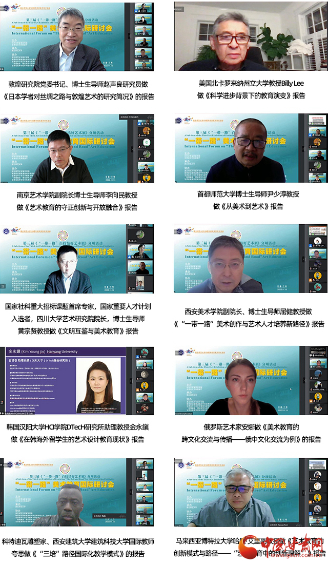 中國(guó)甘肅網(wǎng)11月16日訊 (本網(wǎng)記者 張?zhí)m琴 通訊員 王秀)推進(jìn)“一帶一路”沿線國(guó)家和地區(qū)美術(shù)交流,促進(jìn)美術(shù)教育的國(guó)際化合作和發(fā)展,搭建國(guó)際交流的學(xué)術(shù)平臺(tái),“一帶一路”美術(shù)教育國(guó)際研討會(huì)14日在西北師范大學(xué)落幕。來(lái)自美國(guó)、韓國(guó)、俄羅斯、馬來(lái)西亞等十個(gè)國(guó)家,三十八所海內(nèi)外高校、研究院、美術(shù)館、美術(shù)協(xié)會(huì)、雜志社、中小學(xué)領(lǐng)域近五十位專家在線上參加了會(huì)議,深入分析了當(dāng)前美術(shù)教育所面臨的挑戰(zhàn)與機(jī)遇,共同探討了面向未來(lái)的美術(shù)教育模式、路徑和前景。