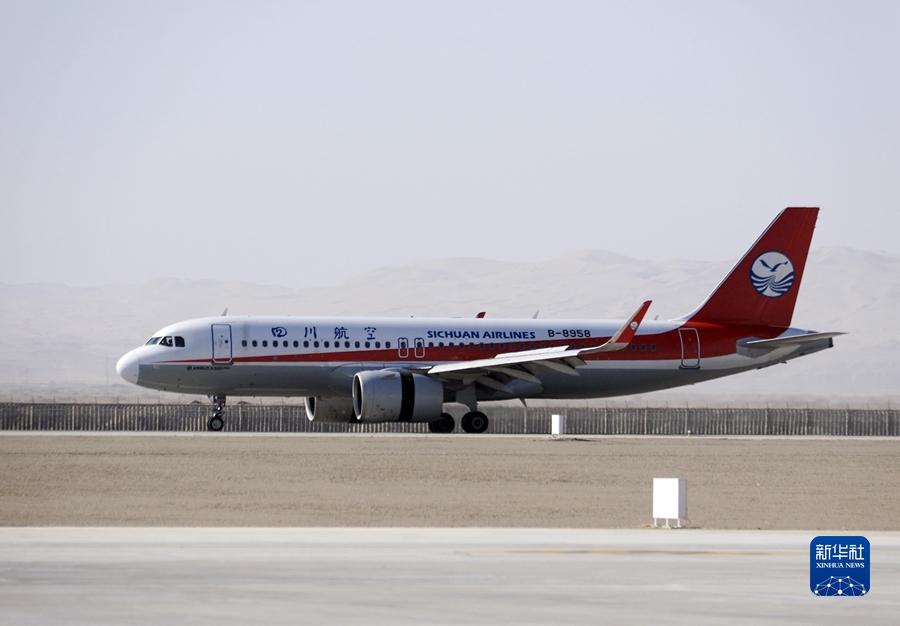 3月26日,由四川航空公司執(zhí)飛的成都至敦煌往返直達(dá)航線正式通航。這是首航航班降落在甘肅敦煌莫高國際機場。新華社發(fā)(張曉亮攝)