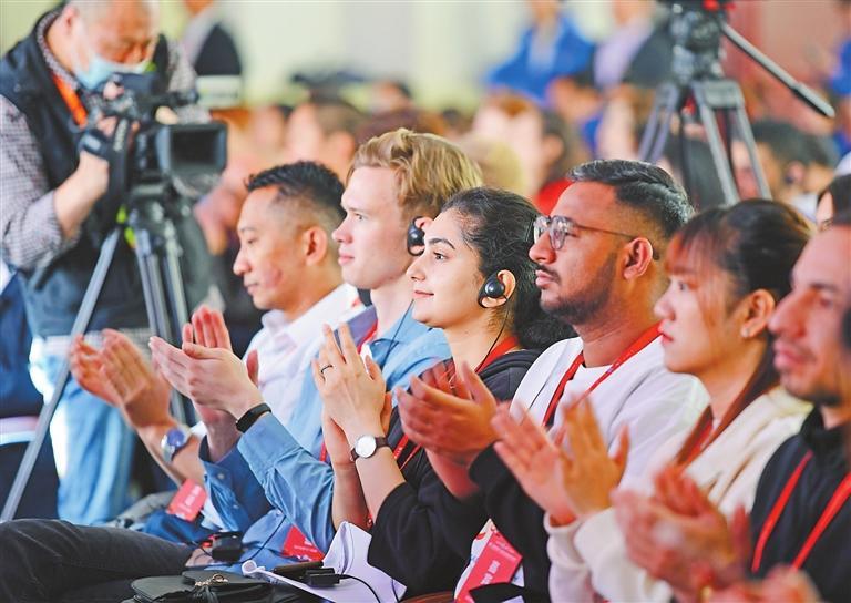 4月27日,甘肅旅游推介及國際旅行商合作大會舉辦,與會嘉賓聆聽推介。