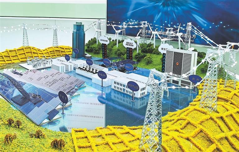 在國(guó)家電網(wǎng)展館展出的甘肅省武威市古浪縣八步沙“電沙成金”——沙漠能源生態(tài)圈品牌。本版圖片均由新甘肅·甘肅日?qǐng)?bào)記者王占東攝