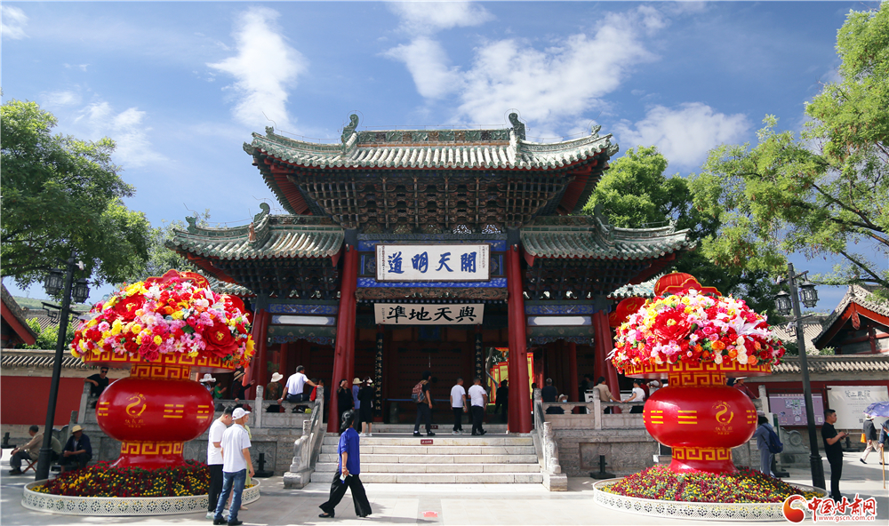 樂舞畢,參加大典的領導和嘉賓們緩緩步入伏羲廟,敬獻花籃,行鞠躬禮,瞻仰伏羲圣像。