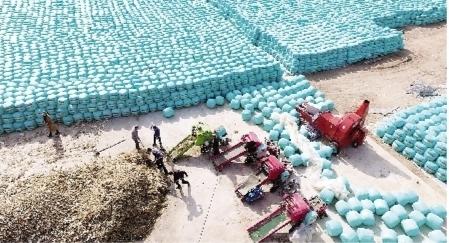 廣袤大地鋪金繡綠。在廣河縣齊家鎮(zhèn)糧改飼種植基地,一臺(tái)臺(tái)大型收割機(jī)正在田間忙碌穿梭,玉米連同秸稈被農(nóng)機(jī)收割,一塊塊農(nóng)田耕耘平整,構(gòu)成一幅秋收風(fēng)景圖;