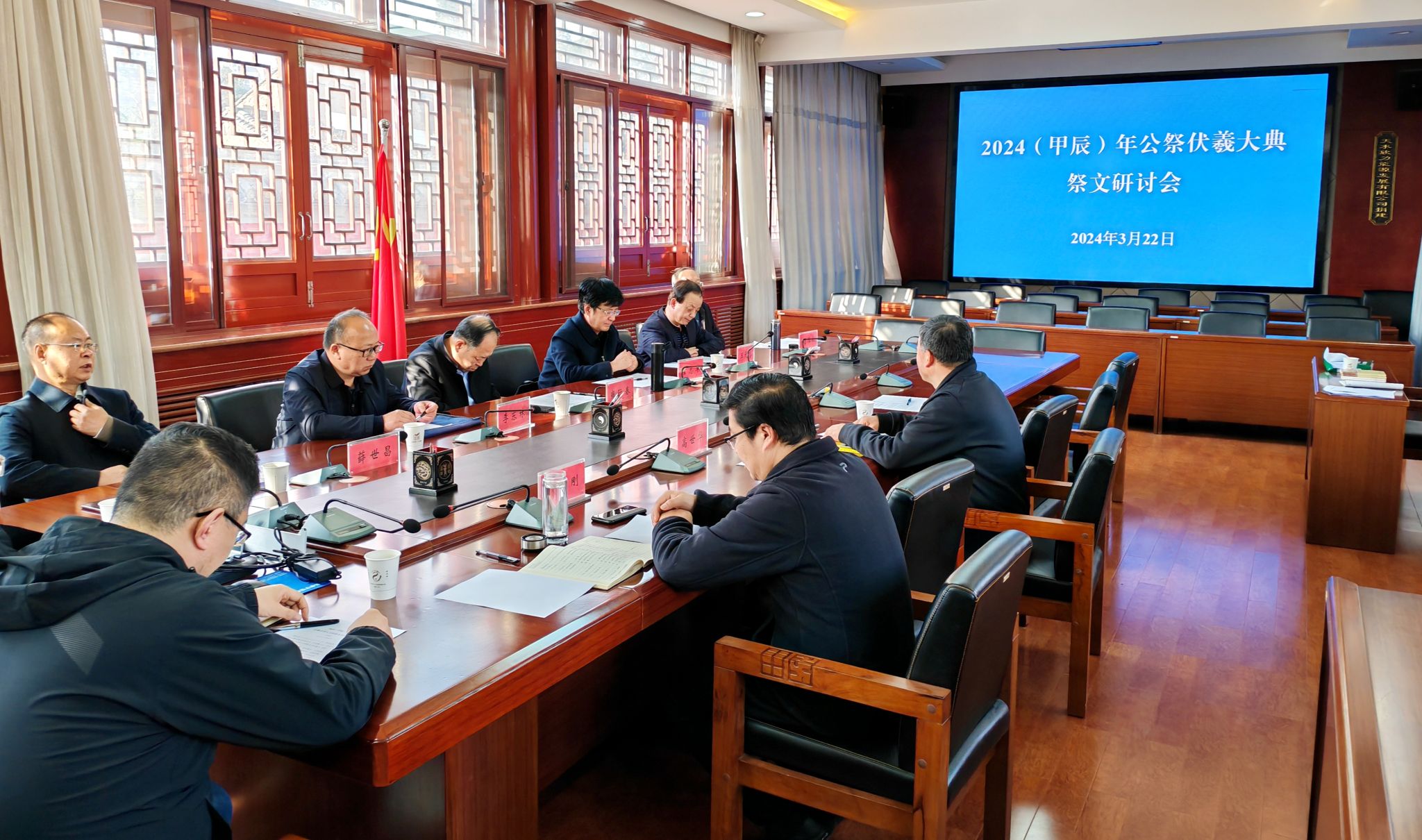 3月22日,天水市博物館召開了2024(甲辰)年公祭伏羲大典“祭伏羲文”研討會。市政府政策研究室副主任李東林,天水師范學院教授霍志軍、雍際春、王元忠、劉雁翔、薛世昌,市博物館副館長高世華、崔文剛以及相關工作人員參加了會議。會議由天水市博物館副館長高世華同志主持。