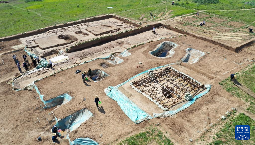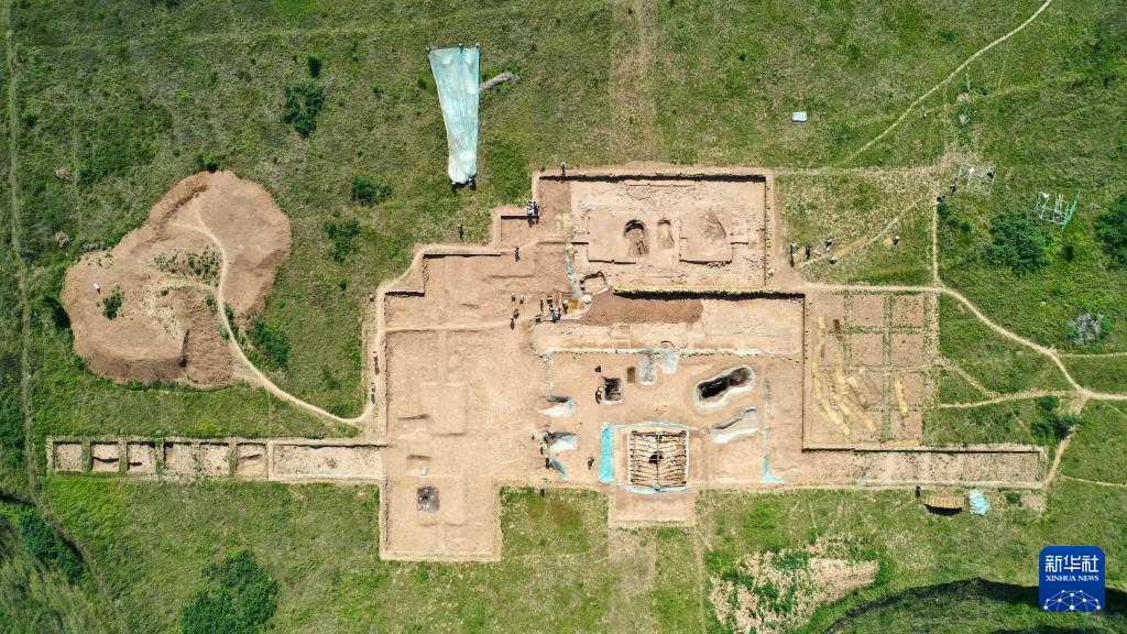 這是2022年6月10日拍攝的甘肅省隴南市禮縣四角坪遺址考古發(fā)掘現(xiàn)場(chǎng)(無人機(jī)照片)。新華社記者 陳斌 攝