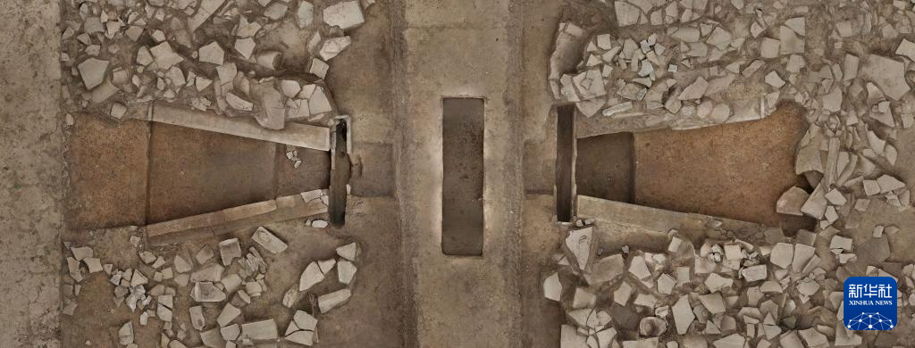 這是甘肅省隴南市禮縣四角坪遺址的排水設(shè)施(2024年1月8日攝,無人機(jī)照片)。新華社發(fā)(四角坪遺址考古隊(duì)供圖)
