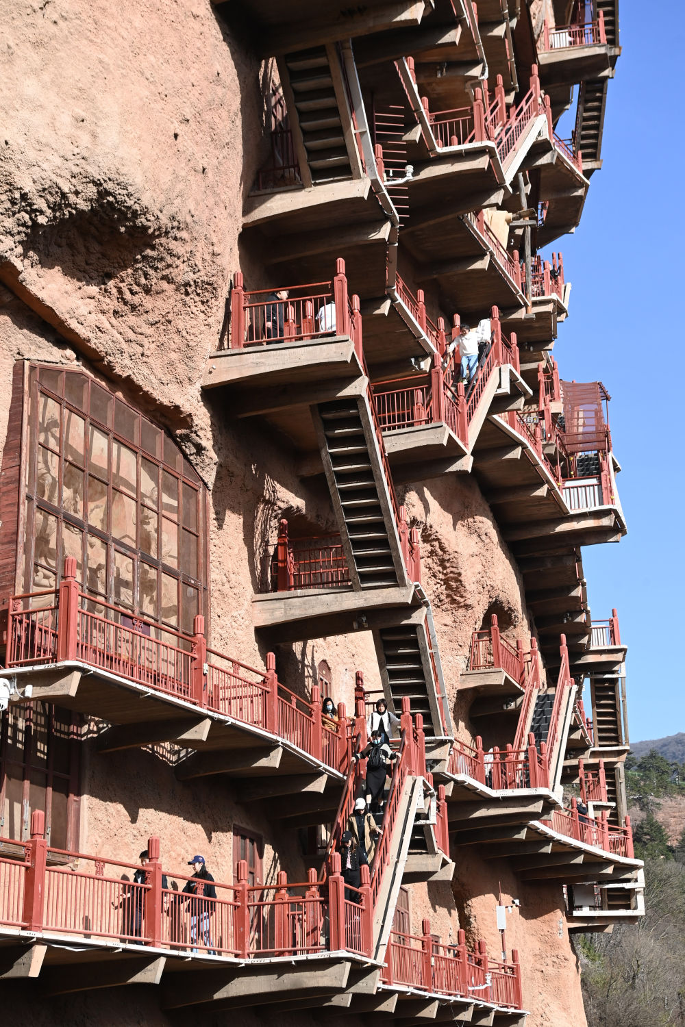 游客在甘肅天水市麥積山石窟游覽 范培珅 攝