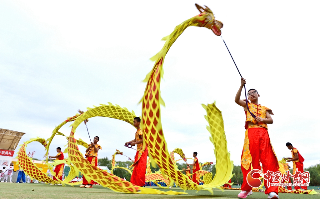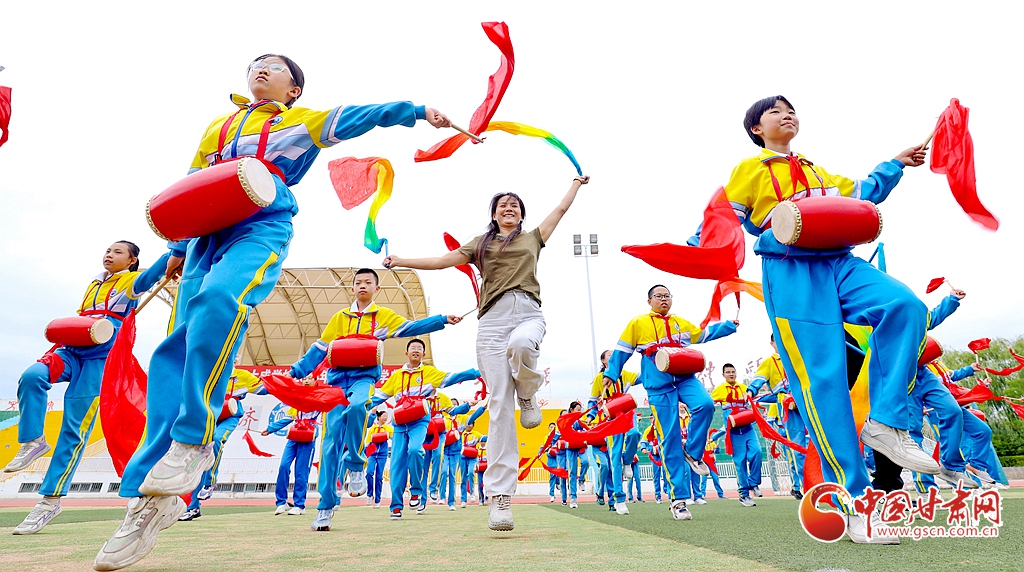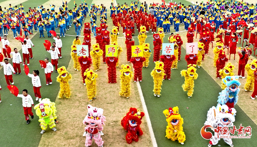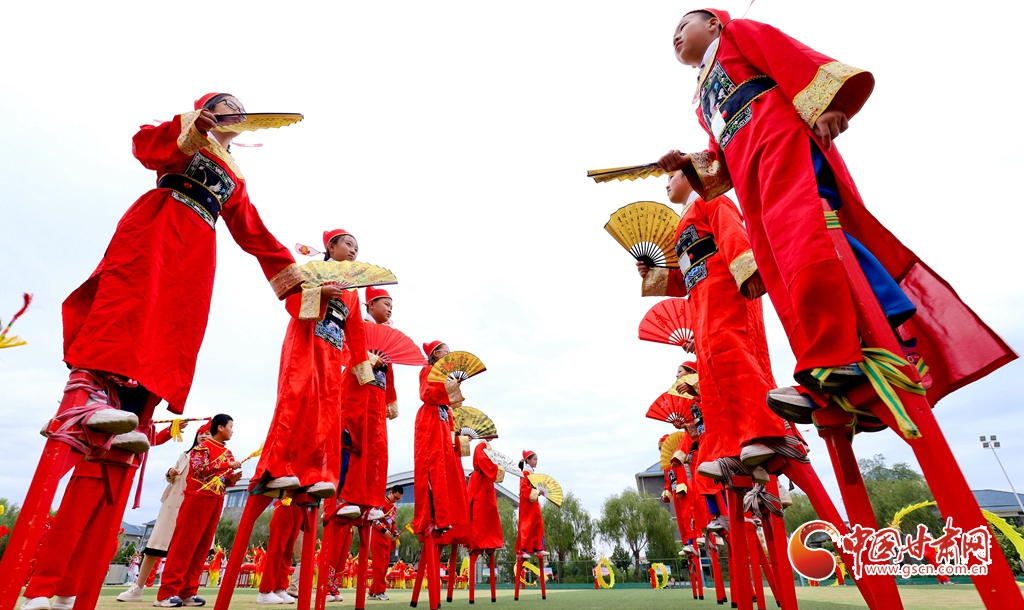 9月5日,在張掖市甘州區(qū)大成學(xué)校體育場(chǎng)上,舞龍、舞獅、踩高蹺、扇子舞、威風(fēng)鑼鼓、腰鼓、武術(shù)等38個(gè)社團(tuán)依次進(jìn)行成果展演,師生們?cè)趥鞒兄腥A民族的優(yōu)秀文化,探索向美而行的新路徑中,歡慶即將到來(lái)的第40個(gè)教師節(jié)。